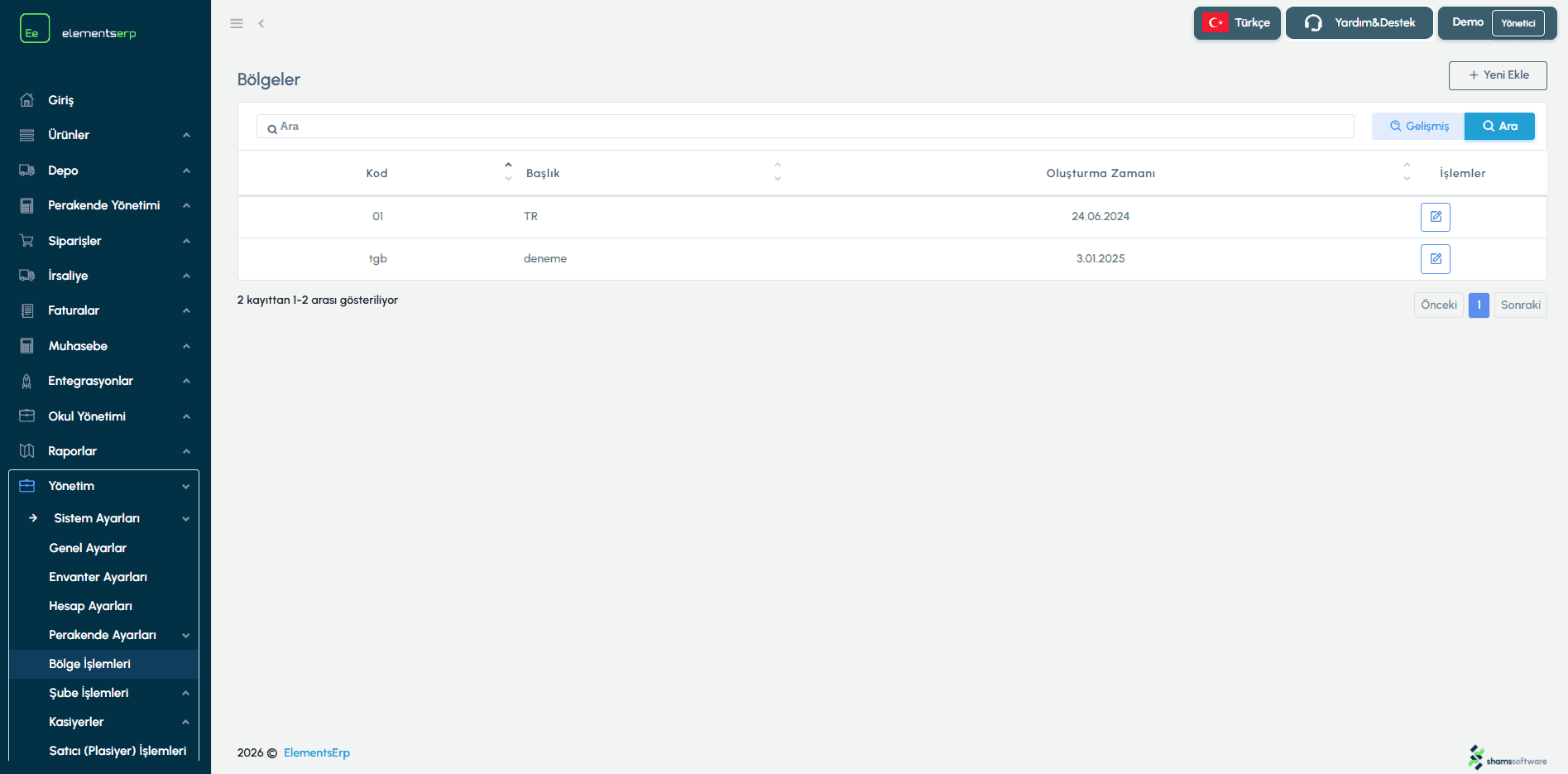 İpucu: Bir bölgeyi düzenlediğinizde, o bölgeye bağlı olan şubelerin veya kasaların ayarları otomatik olarak güncellenmez. Sadece yeni açılacak kayıtlarda varsayılan değerler etkili olur.