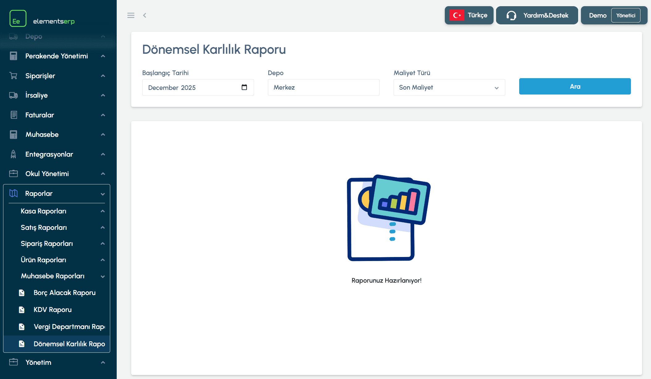 Dönem (StartDate) Zorunlu: Raporun alınacağı Ay ve Yıl (Örn: 2025-02). Varsayılan olarak içinde bulunduğunuz ay gelir.