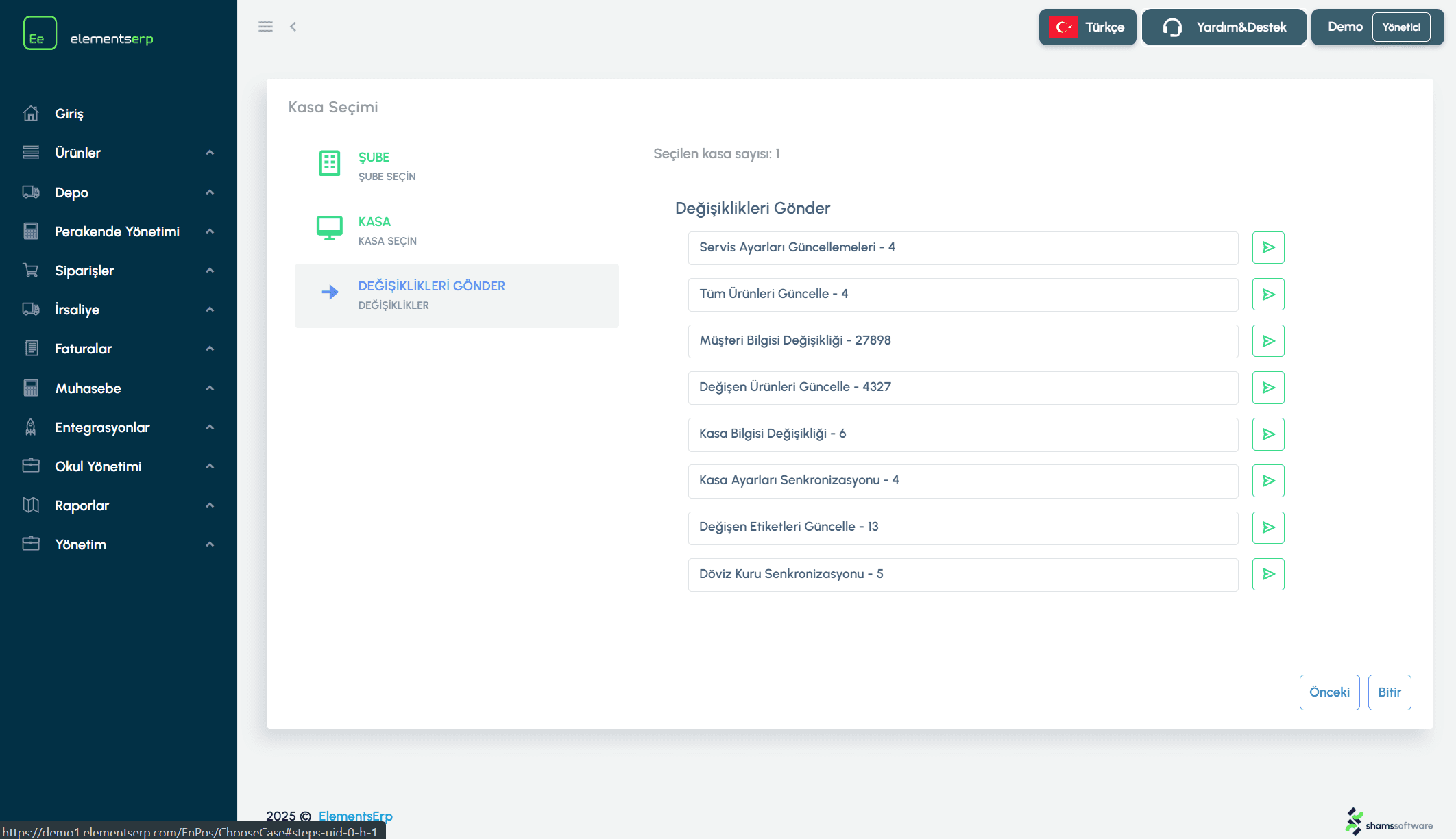 Müşterileri Senkronize Et | Müşteri kartlarındaki değişiklikleri kasaya gönderir. |
