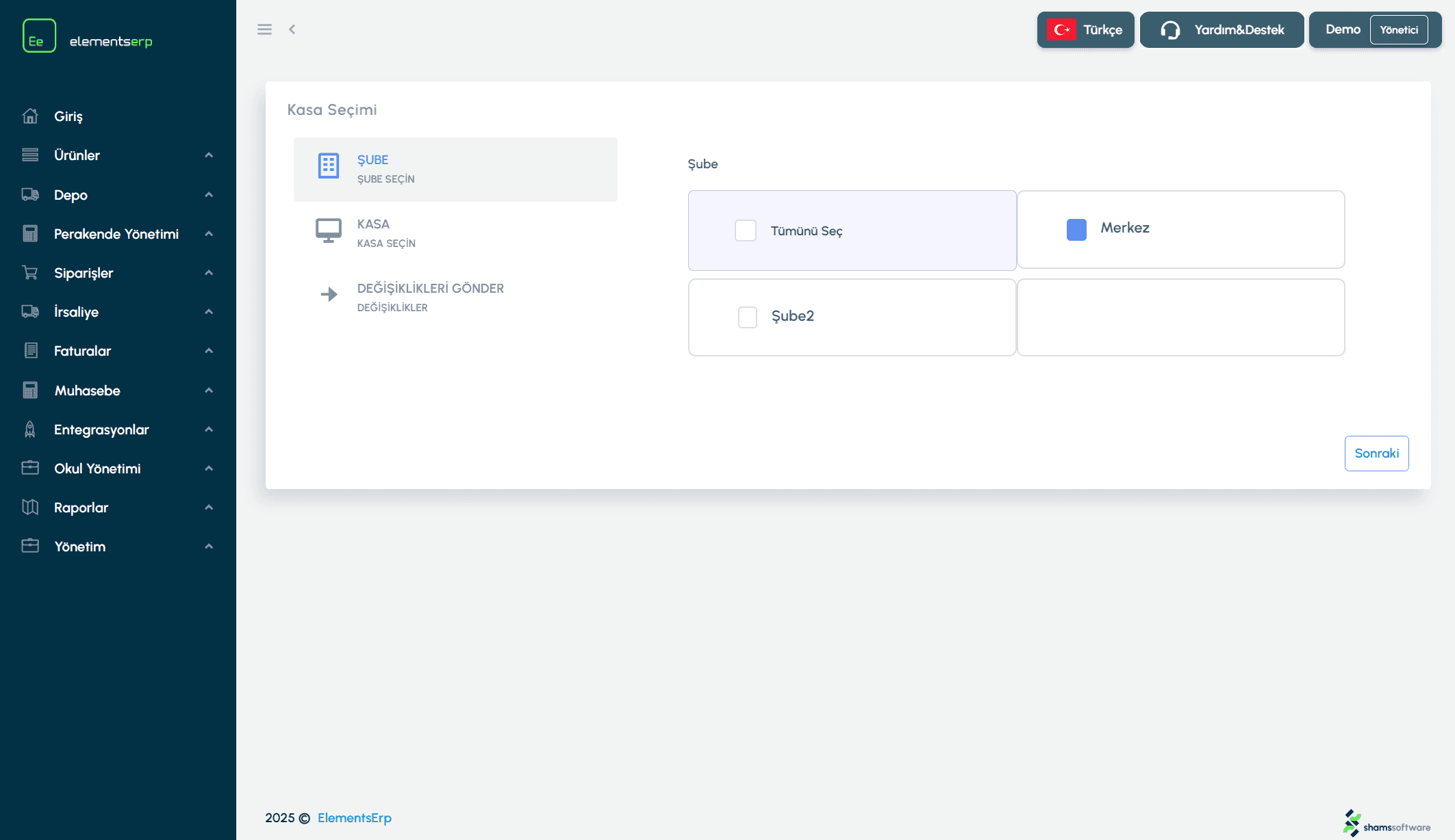 Bu adımda, seçtiğiniz şubelere bağlı olan Kasa (POS) cihazları listelenir.