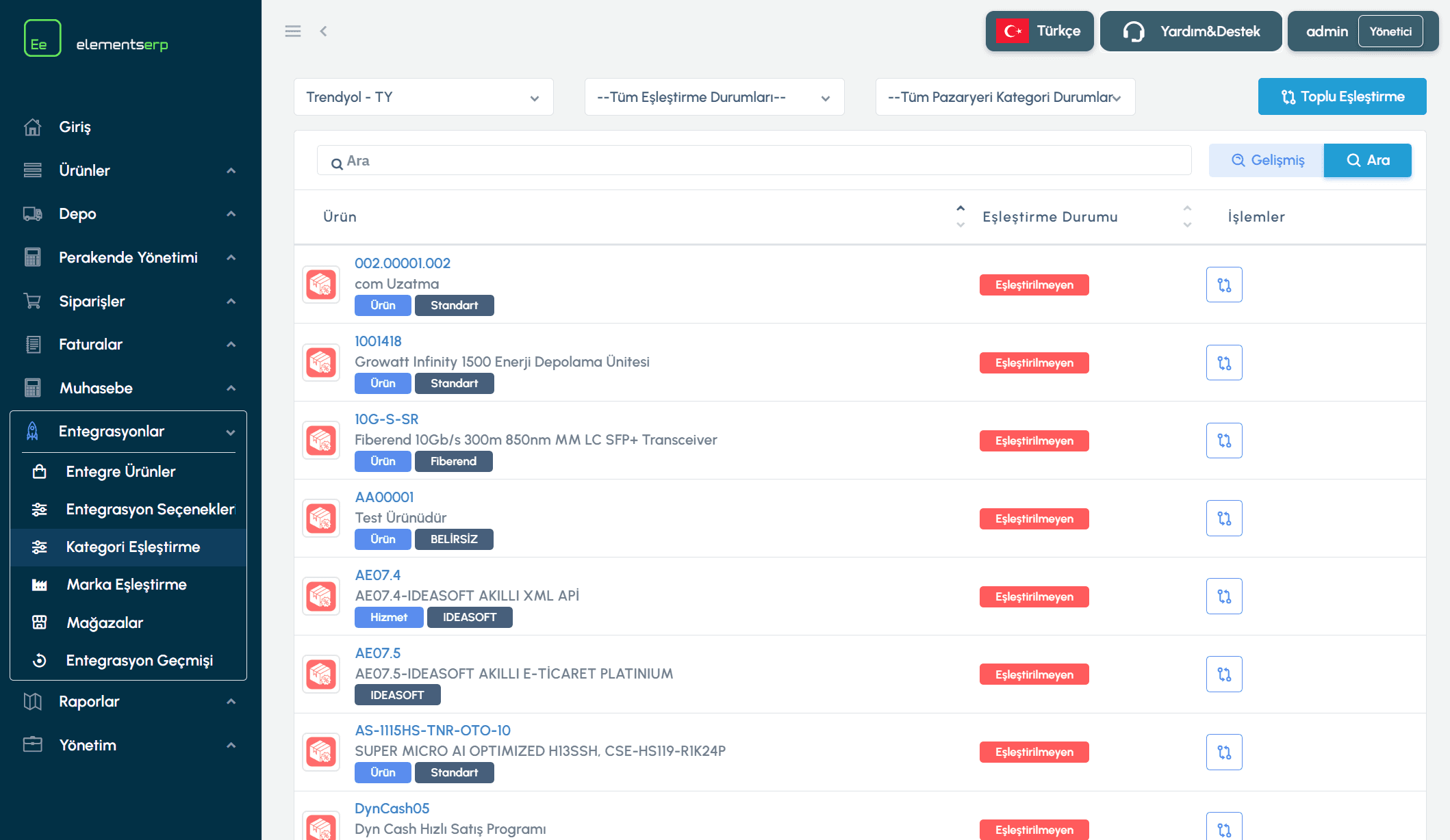 Aynı kategorideki yüzlerce ürünü tek tek yapmak yerine "Toplu Eşleştirme" (Bulk Mapping) özelliğini kullanabilirsiniz.