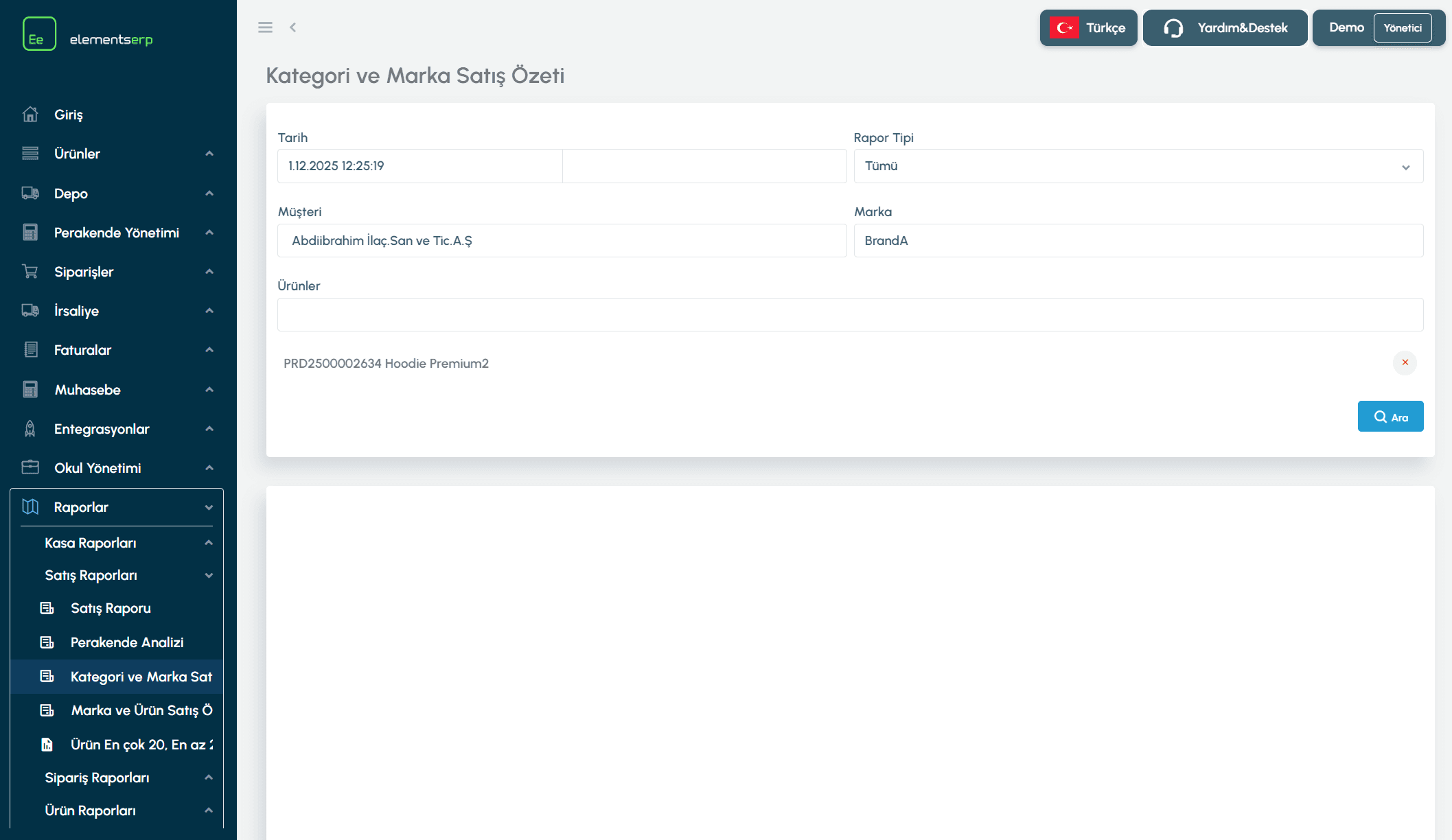 Müşteri / Marka: Belirli bir müşteri veya markaya özel rapor almak için doldurabilirsiniz (Opsiyonel).