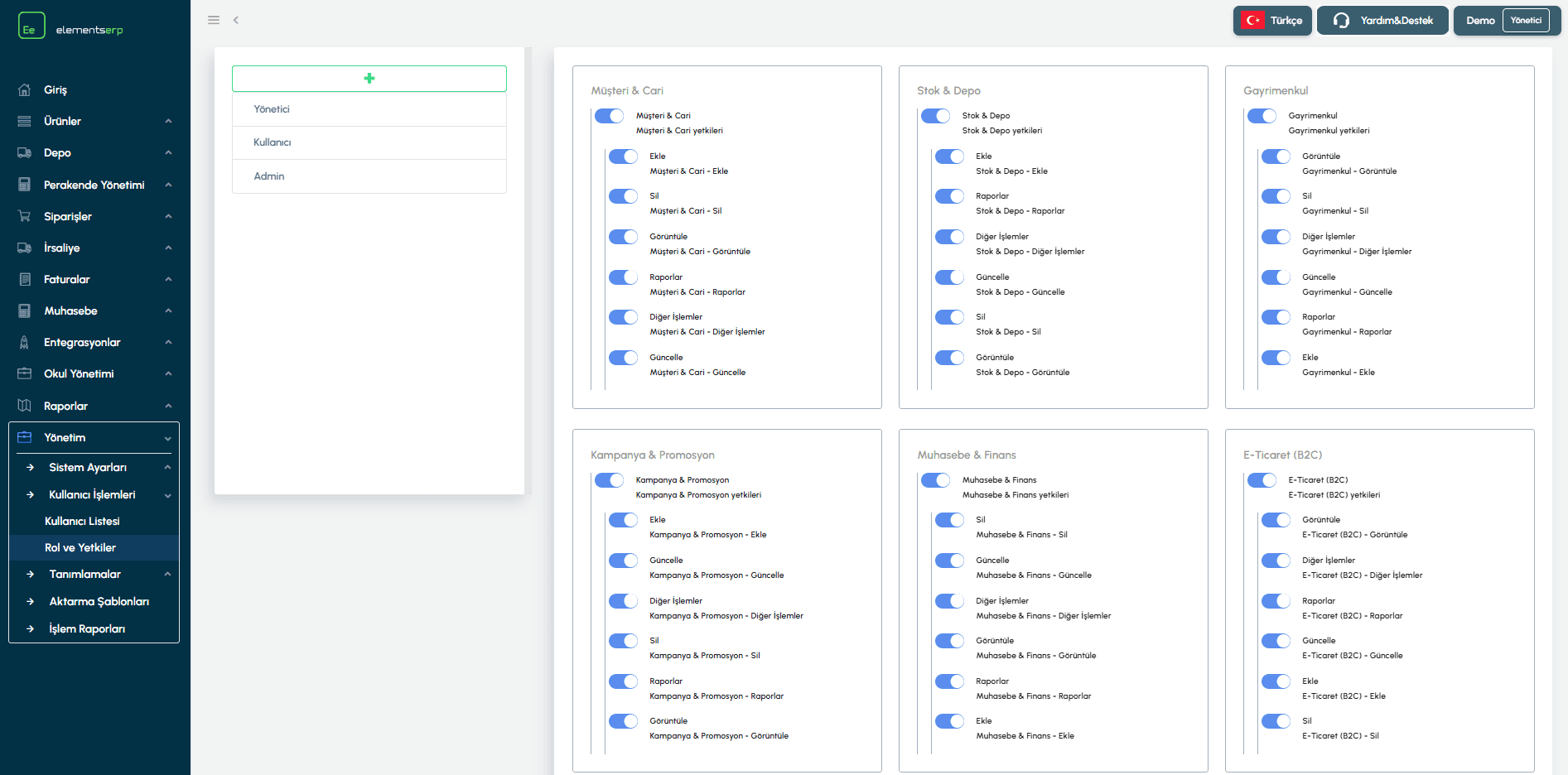 Örnek: "Kasiyer" rolü için "Satış Yapma" yetkisini açabilir ancak "Ürün Silme" veya "Rapor Görüntüleme" yetkilerini kapatabilirsiniz.
