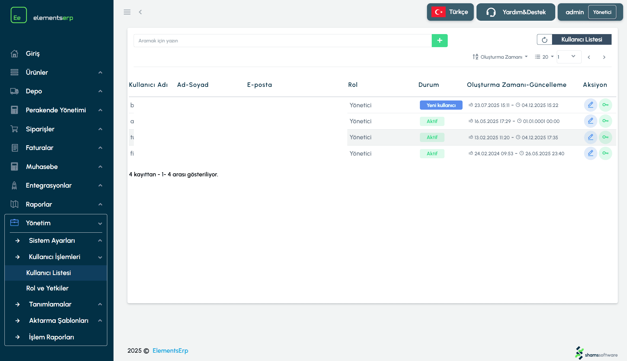 Güvenlik Notu: Bir personelin işten ayrılması durumunda hesabını silmek yerine, düzenleme ekranından durumunu "Pasif" yapmanız önerilir. Böylece geçmişe dönük işlem kayıtları (loglar) korunmuş olur.