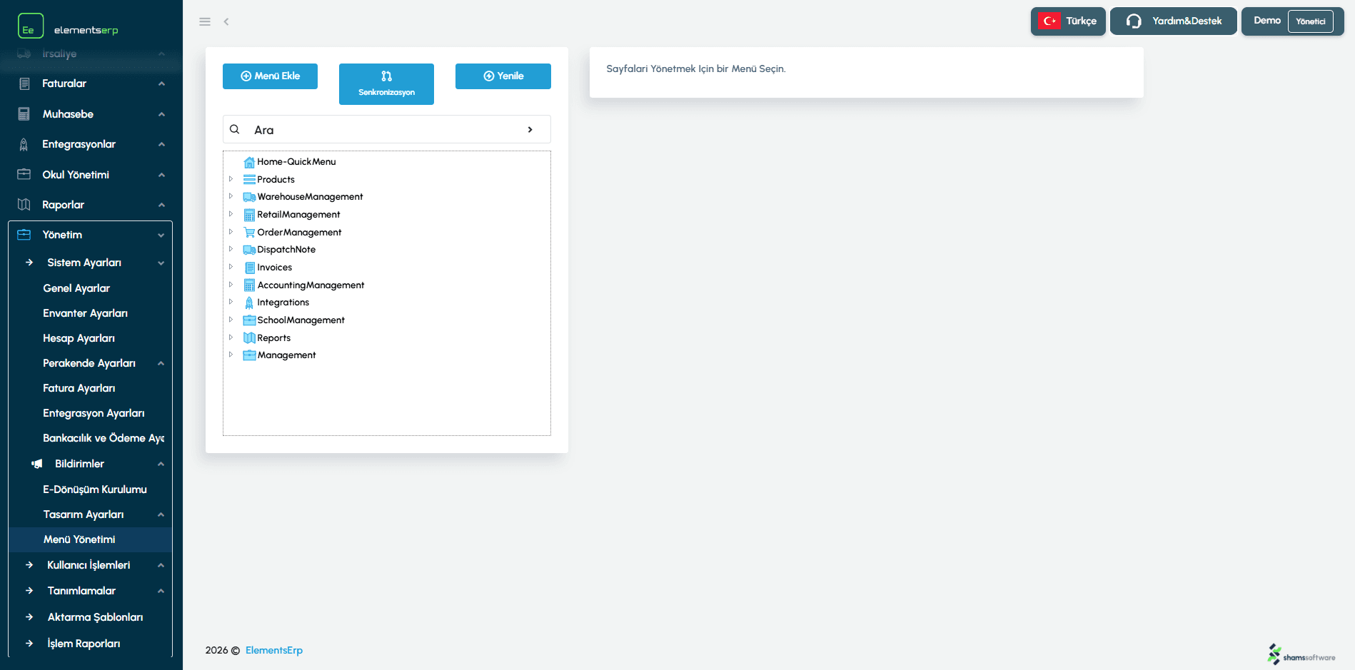 Senkronizasyon (Synchronization): Menü tanımlarını sistemdeki mevcut sayfalarla eşler. Yeni eklenen kod sayfalarını menüye dahil etmek veya güncellemeleri almak için kullanılır.