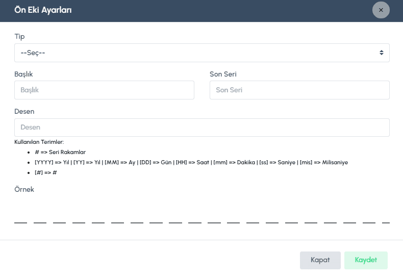 Örnek Şablon: FAT-[YYYY][MM]-####