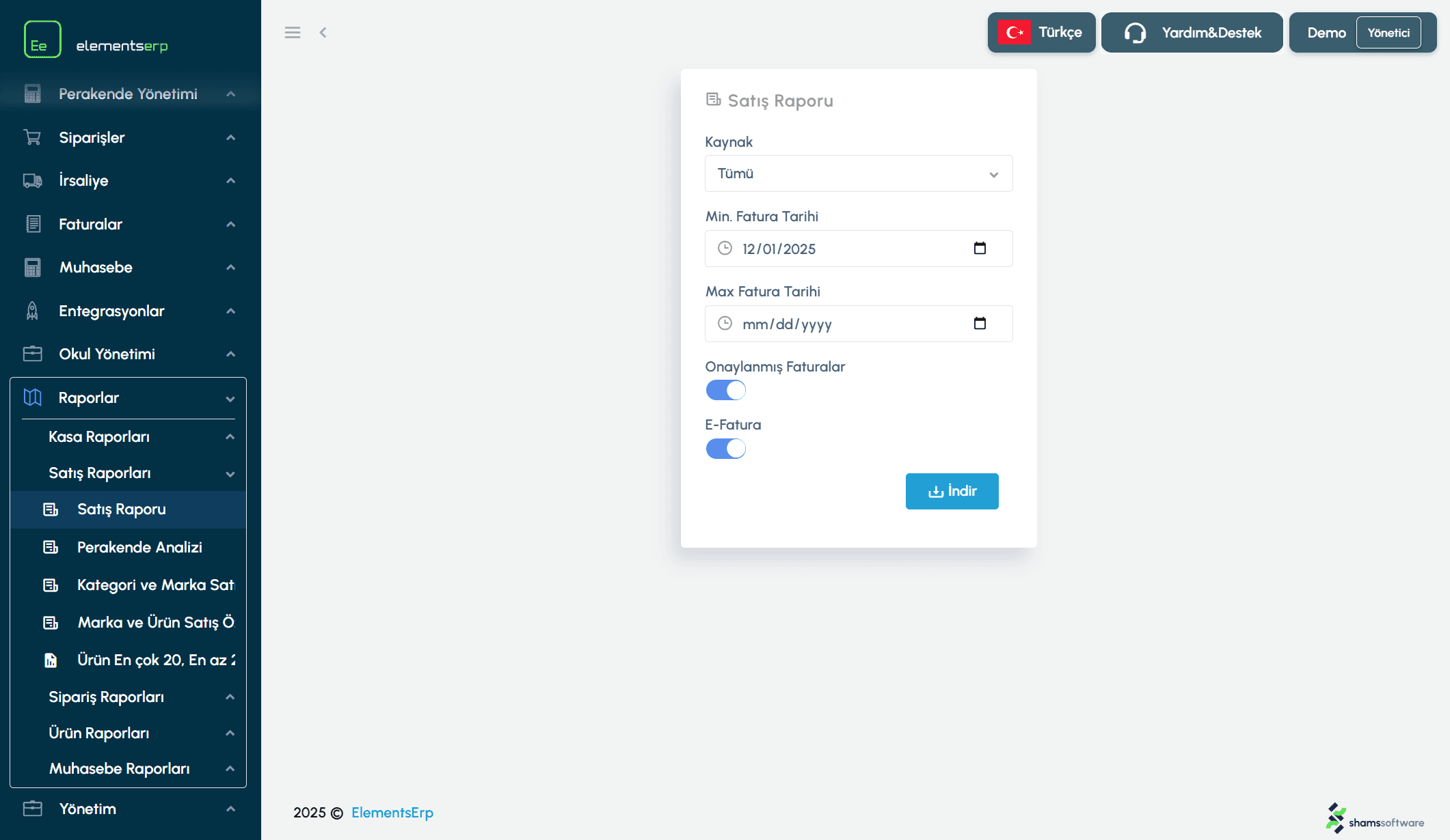 Fatura Tarihi (Başlangıç/Bitiş): Raporun kapsayacağı tarih aralığını girin. (Varsayılan: Ayın başından bugüne kadar).
