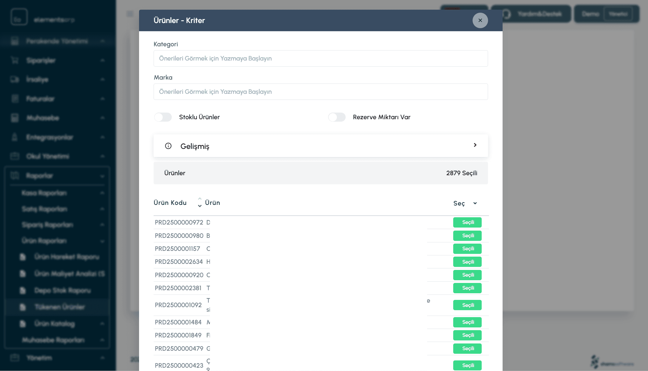 Tükenen Ürünler Raporu