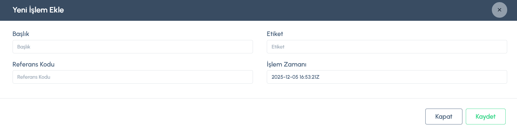 İşlem Zamanı: Kaydın muhasebeye işleneceği tarih ve saat.